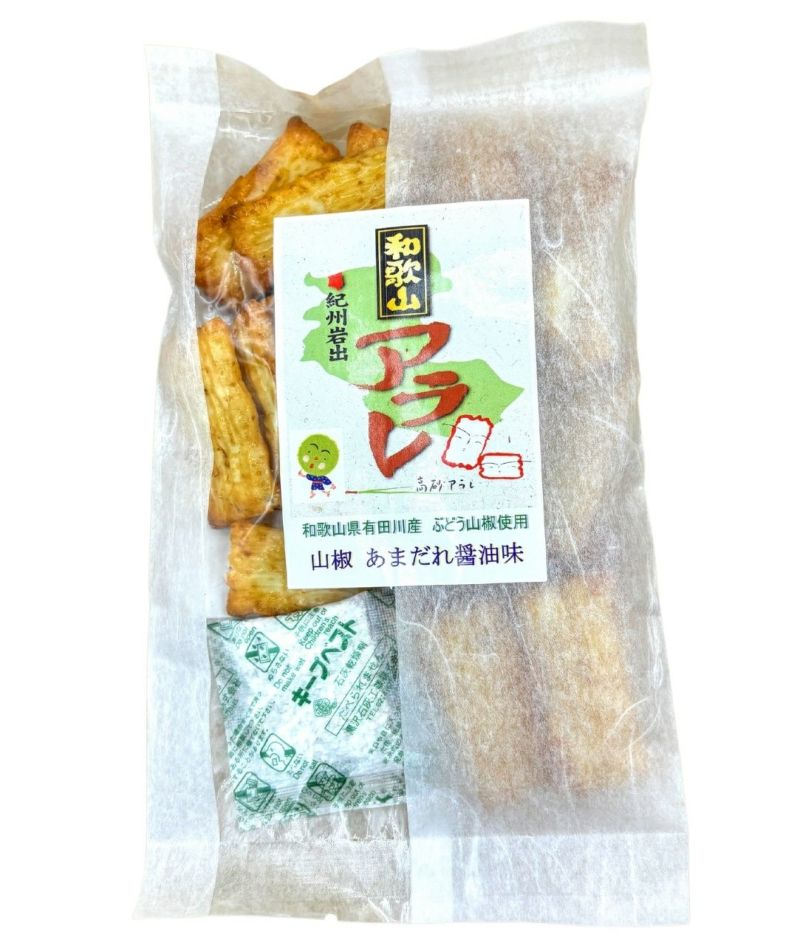 | 原材料 | 餅米、醤油、砂糖、糖類、発酵調味料、調味料(アミノ酸等)、カラメル色素、山椒(紀州しみず産) ※原材料の一部に小麦、大豆含む |
